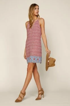 Done in a captivating pattern with a floral border print at the hem, this halter dress will be an instant go-to for your summertime endeavors. It’s got a split neckline and simple, unfussy silhouette—perfect for slipping on for beach days, brunch outings, and anything in between.