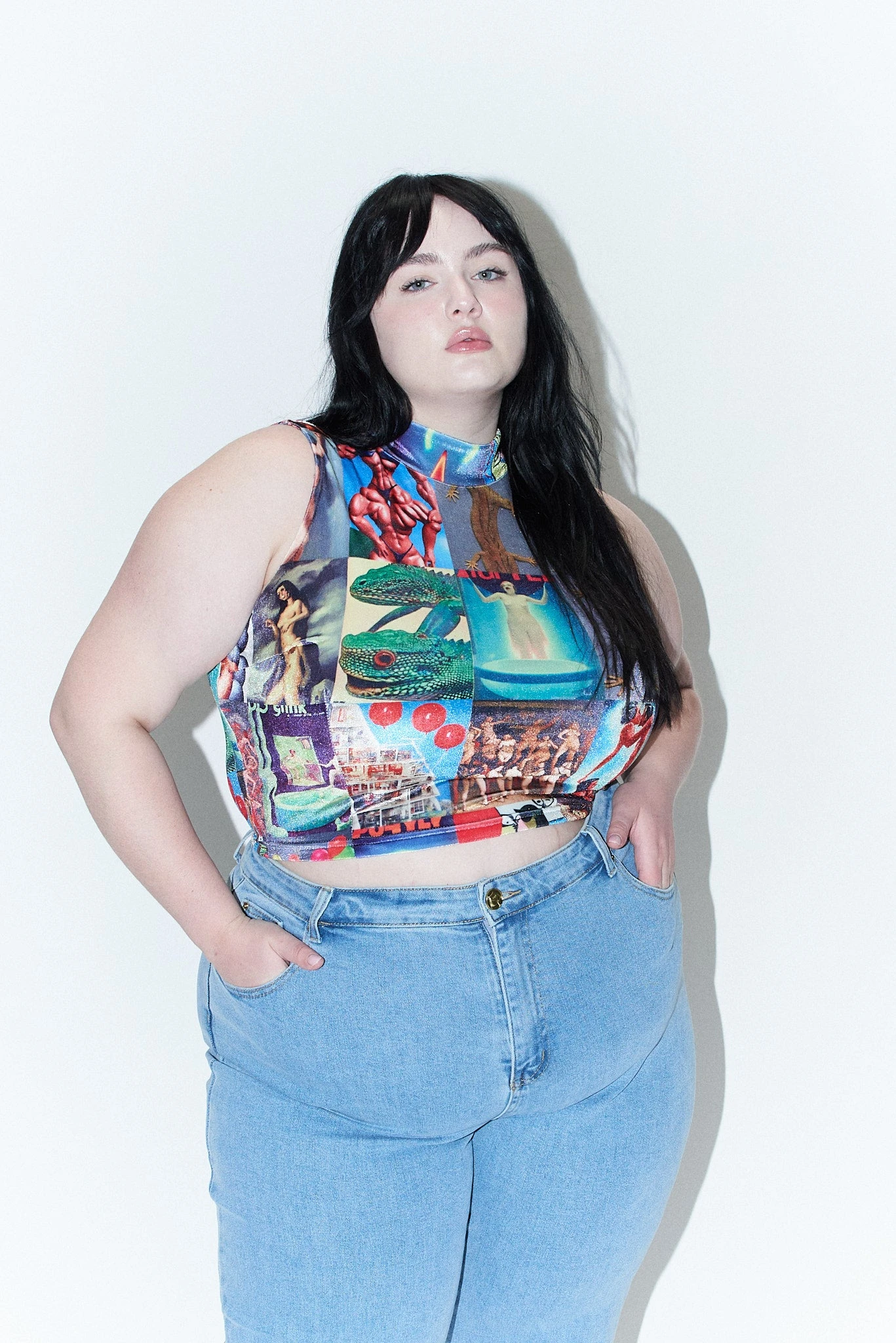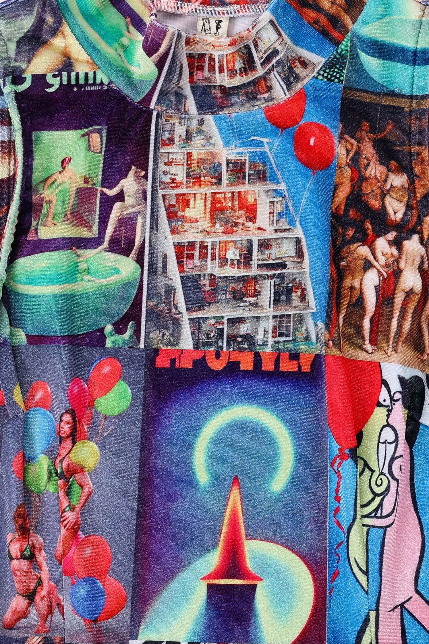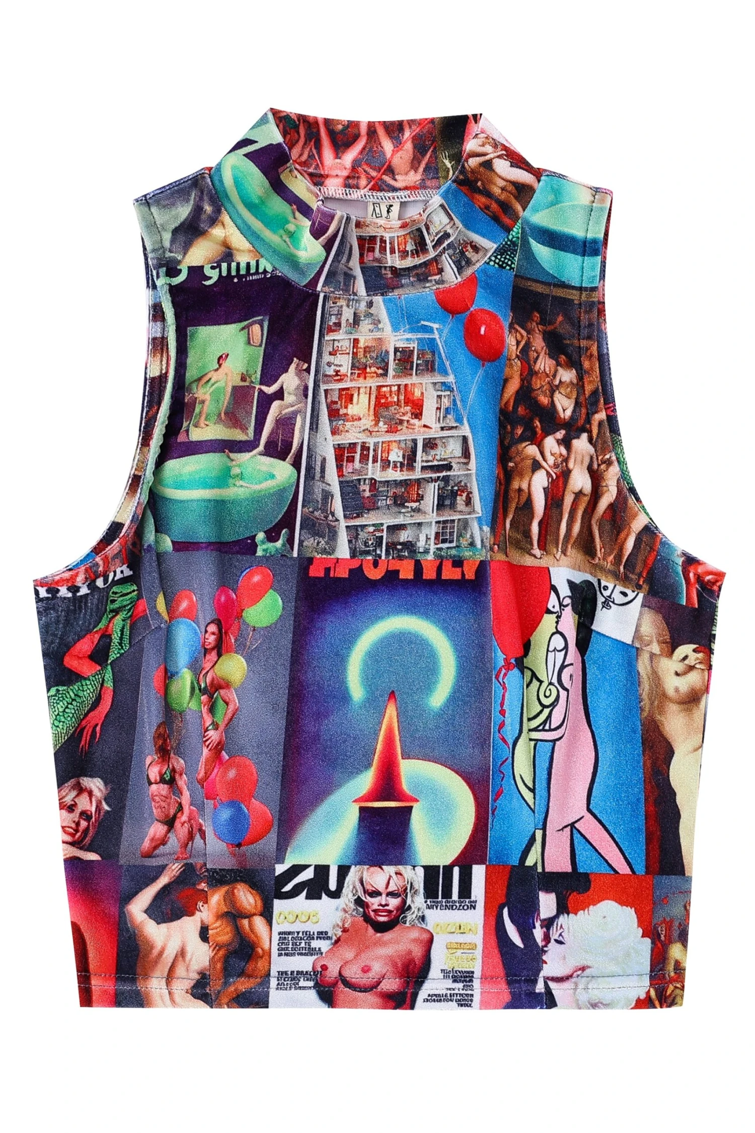 AI Collage VELVET Mock Neck Crop