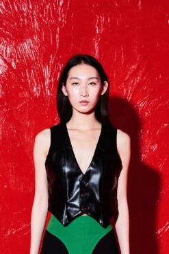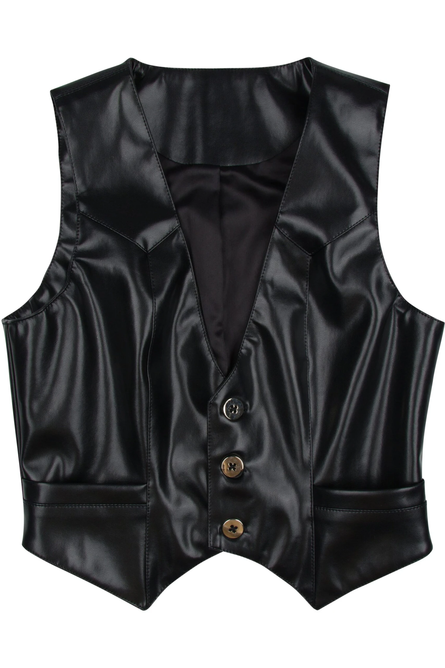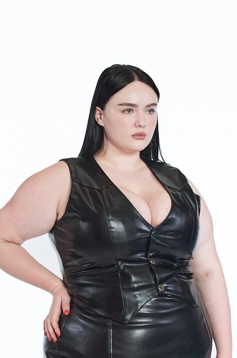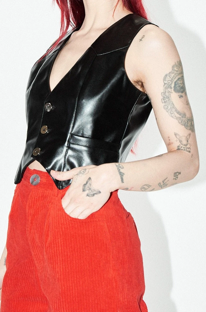 That’s right. Plant leather that feels just like real leather, if not more! A nice, structured fit with buttery soft material and silver metallic buttons. Fits slightly cropped.Â