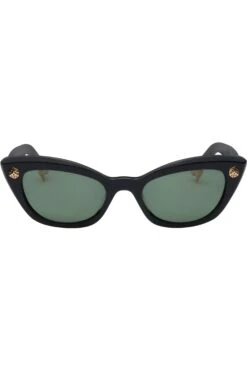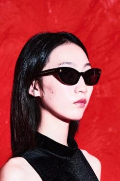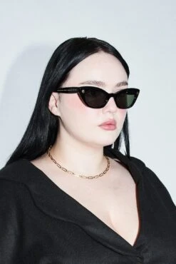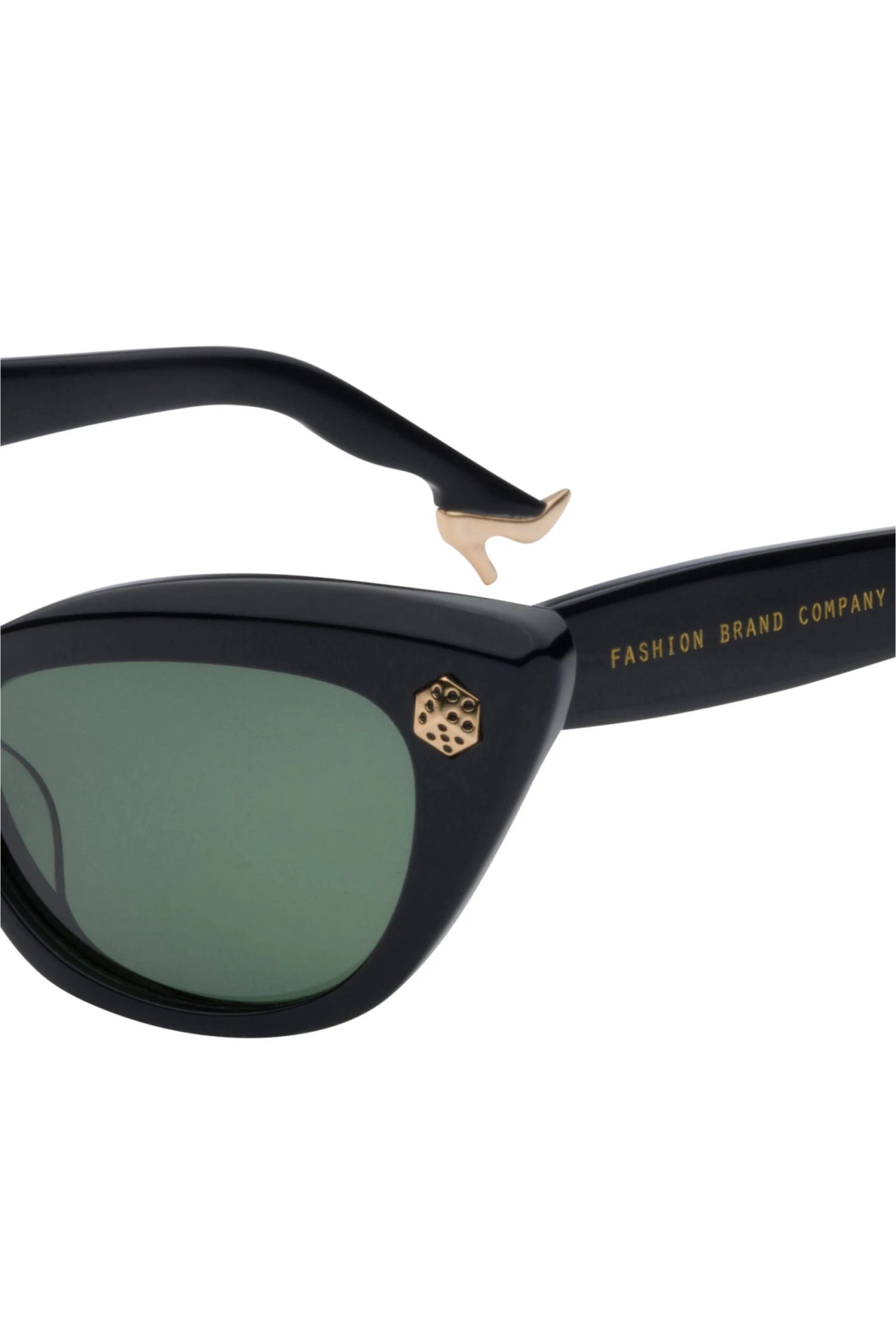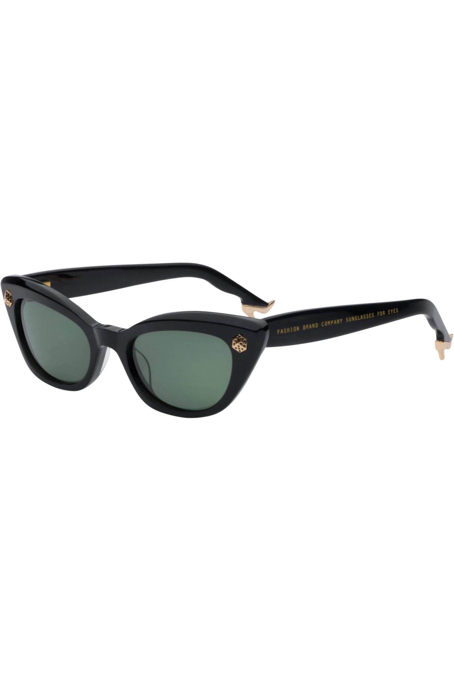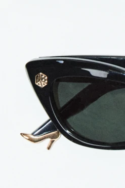 Sturdy, smoosh-proof sunglasses. Black lenses, cat eye frames, dice details.