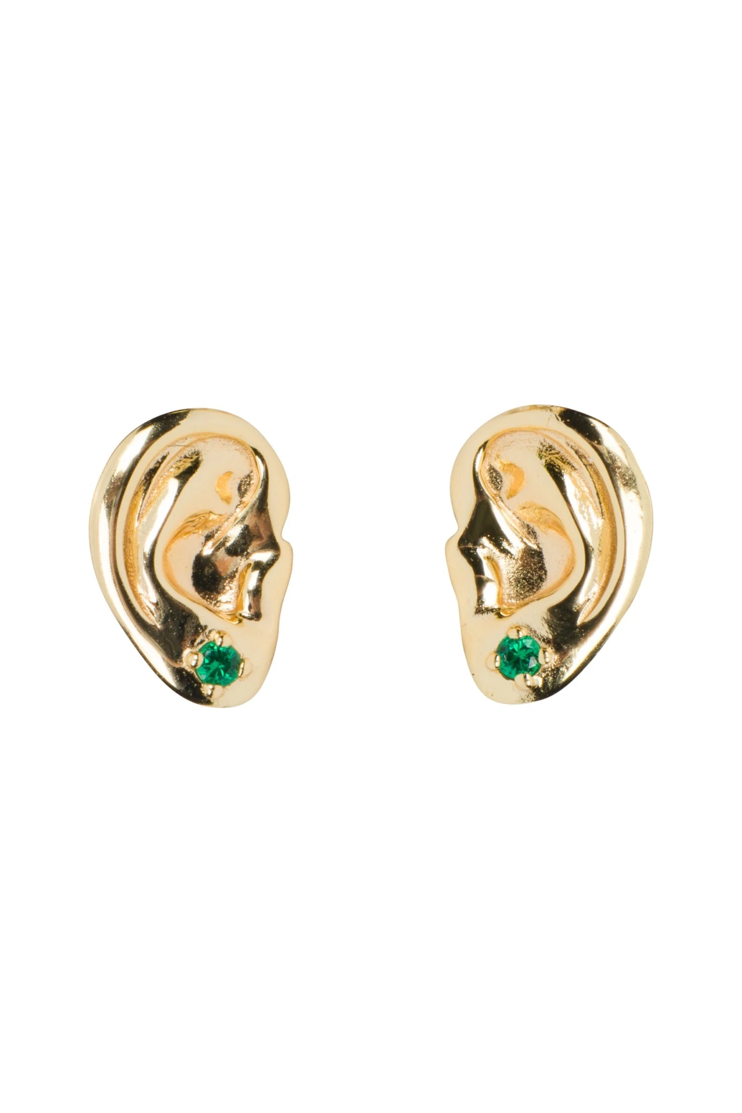 Your everyday forever earrings. The perfect size and very comfortable. Custom designed by Penelope Gazin with specially designed 8 mm tall left and right gold filled ears. Real emerald “earrings” on the lobes. Most importantly, these are hypoallergenic! My skin is very sensitive to metals and have worn these for a month straight (and in the shower) to make sure it was good for everyday wear. It passed the test. The most comfortable earrings I have ever owned. Never taking them off.