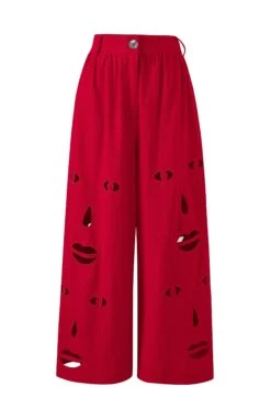 This face won’t stop showing up on our clothes. We’ve tried to figure out exactly where in the process this might be occurring but it remains a mystery. It’s unfortunate because these linen pants are the ultimate comfy movement pant. The material just gets softer over time but remains a nice structured work pant. The face looks like, not a smile, but not really a frown. Just ignore it.Â