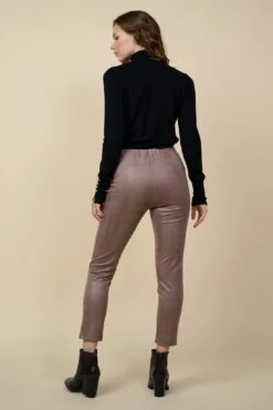 Sleek and simple, these leggings have a streamlined fit in beige vegan leather with an embossed snakeskin pattern. They’ve got a stretchy high-rise waist offering a snug yet comfortable silhouette.