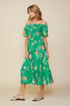There’s no denying the appeal of florals in the sunny months. This smocked dress brings the garden to you, patterned with mood-boosting blooms. Wear it off the shoulder to show off a sun-kissed summer glow.