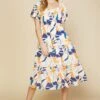 A little number for all your dress-up situations ahead. This floral-print mini dress is smocked to create a fitted shape without skimping on comfort. It features a tie at the neckline, ruffle trim, and a swishy skirt that sways as you walk.