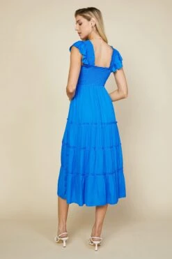 There’s so much to love about this easy-wearing midi dress. Bold blue color, figure-hugging smocked bodice, flowy skirt, those sweet ruffled cap sleeves—it all adds up to a look that you’ll turn to again and again.