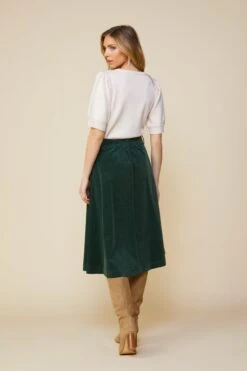 With its high waistband, sharp pleats, and buttons down the front, this corduroy skirt has all the potential to be a favorite. It’s partially elasticized at the back to keep you feeling extra comfortable. Add a simple tee or knit tank, or wear it with our matching corduroy blazer.