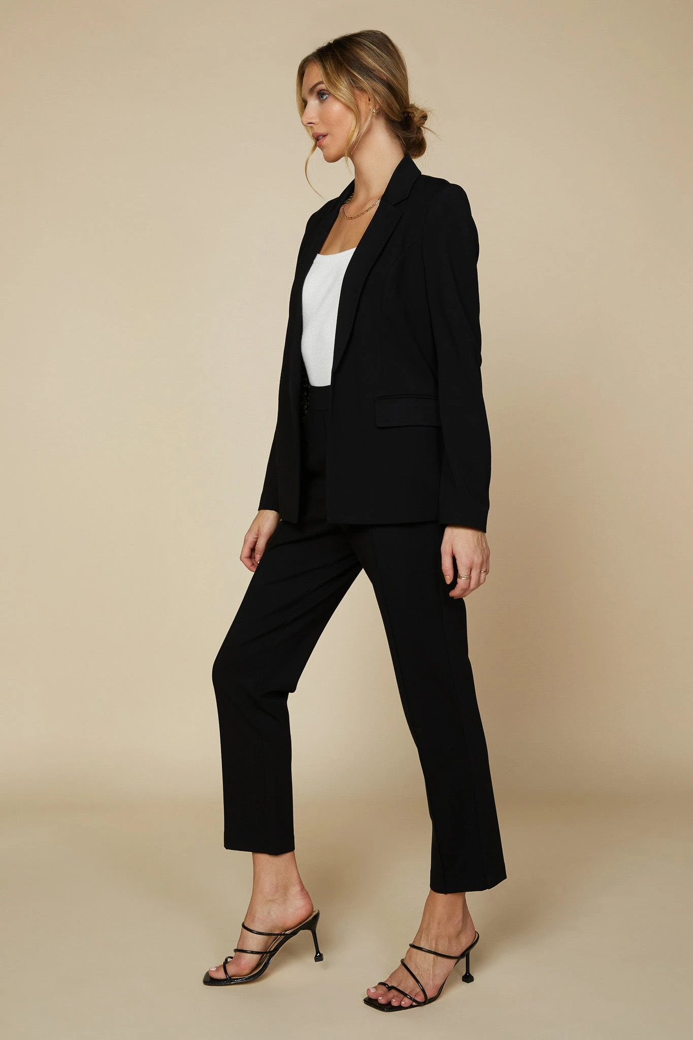 It’s power moves all the way with an open-front blazer in classic black. With notched lapels, long sleeves, and flap pockets, the design is clean and classic, but that color is what makes it stand out.Â