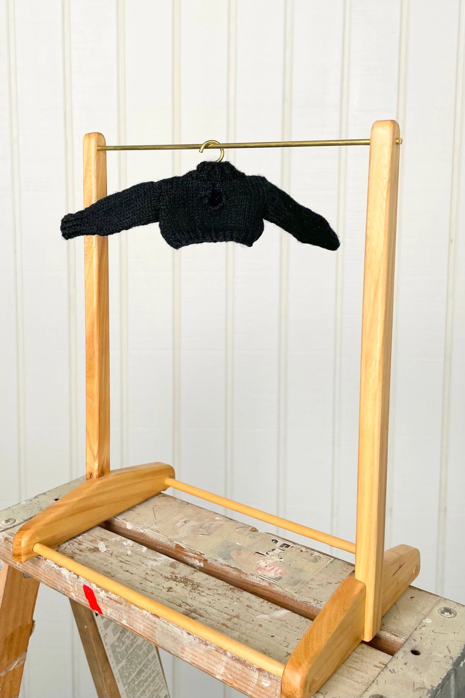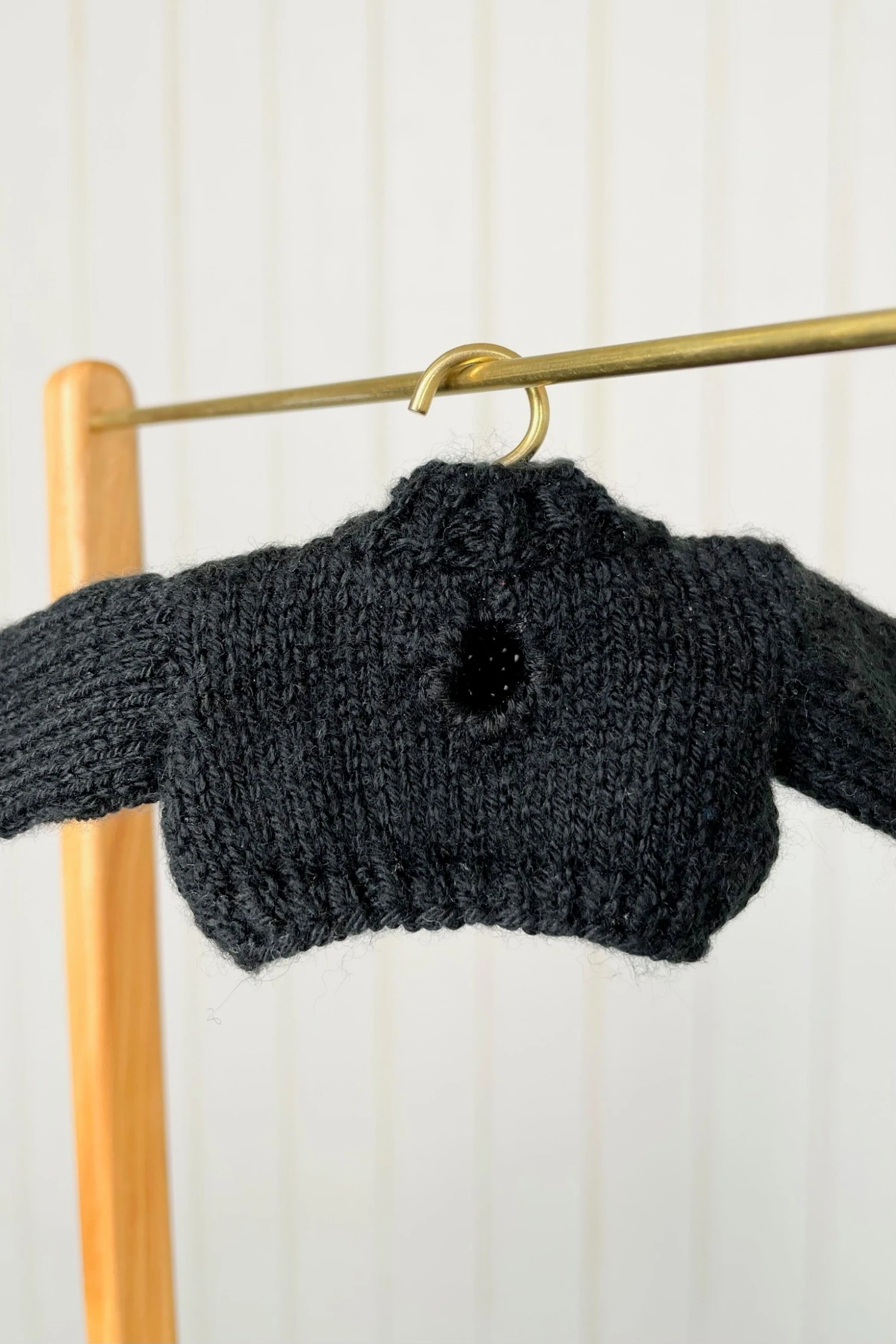A Tiny version of the glory hole sweater. Technically the size for a lizard but there would be literally no way to get this on a lizard. For decoration only