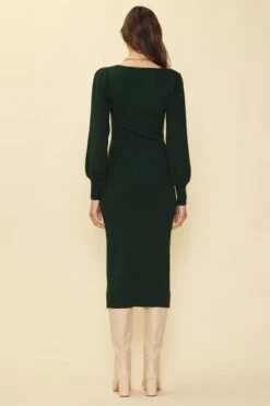 Equal parts alluring and comfortable in a figure-hugging rib knit, this square-neck dress features puffed long sleeves and a shin-skimming hem with a leg-baring front slit. Perfect for date night.