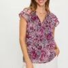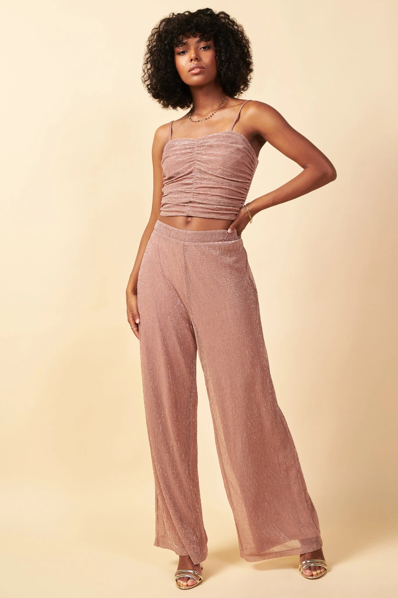 A cascading raw-edged ruffle brings playful movement to this little ruched top with removable spaghetti straps. Crafted from sparkling Lurex-threaded mesh, it’s got a smocked back and slightly cropped length that perfectly complements a pair of high-waisted pants.