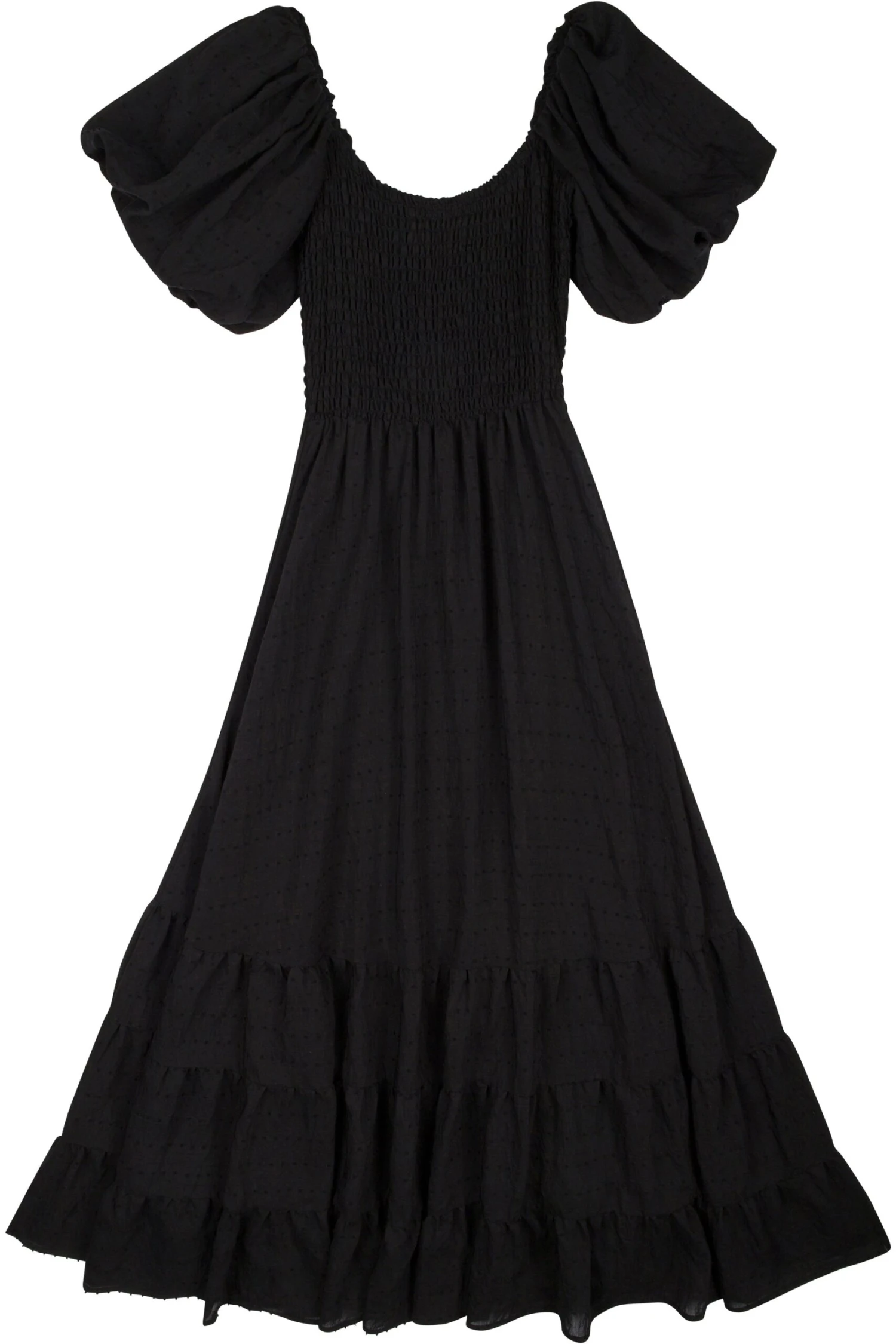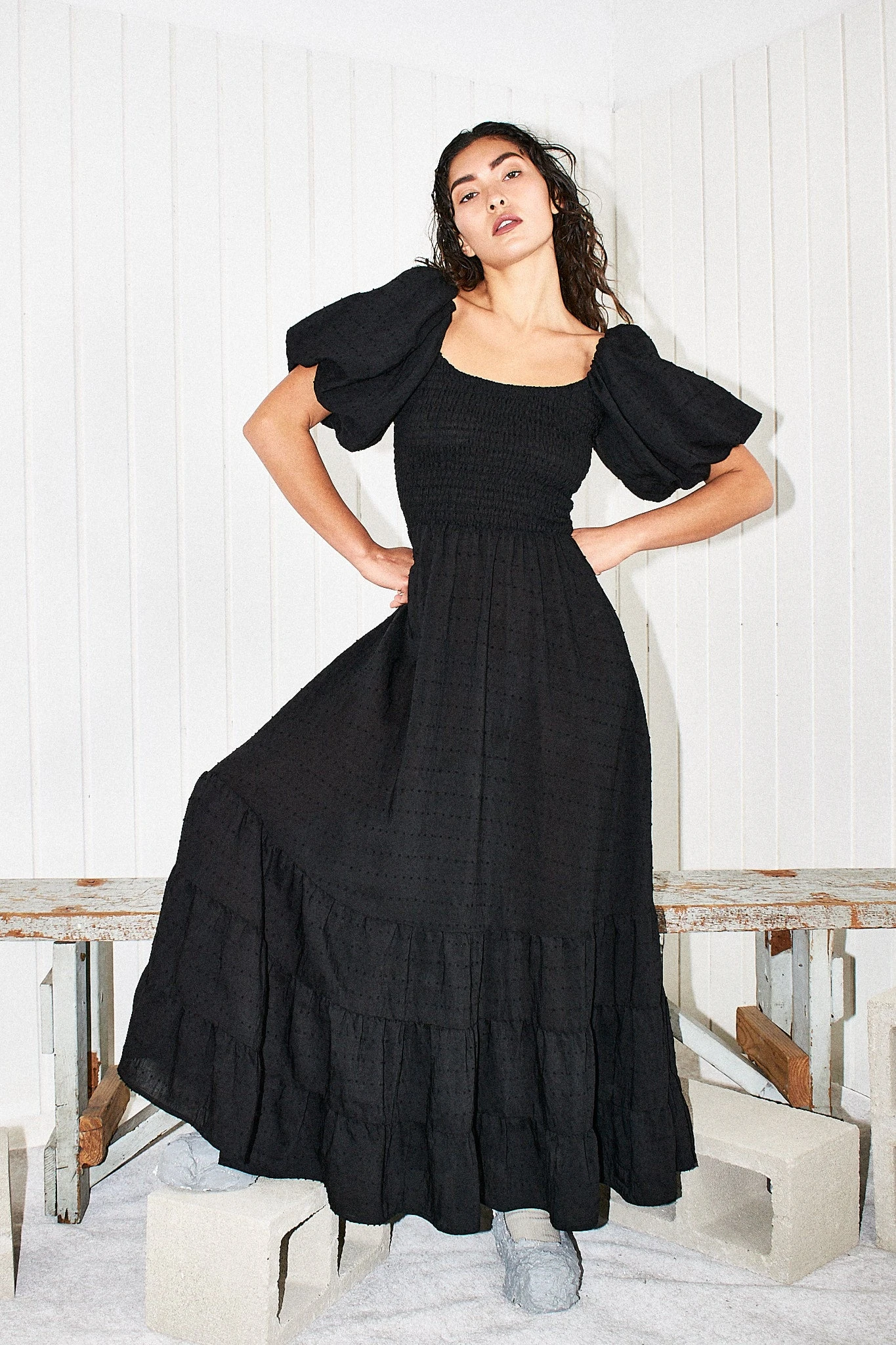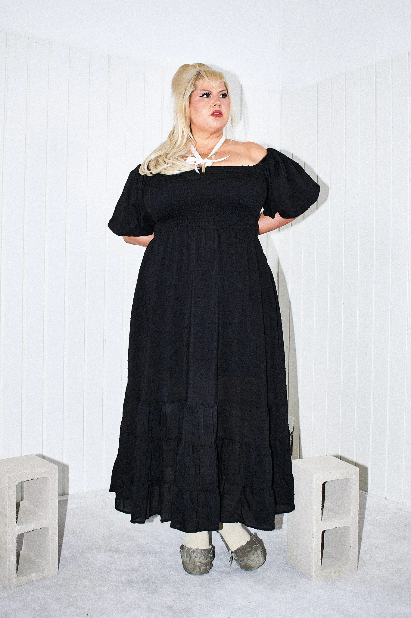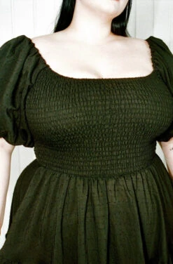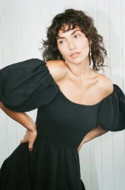 -elastic on the cuffs and shoulders of the puff sleeves- can be worn on or off the shoulder