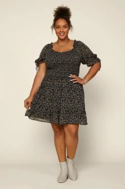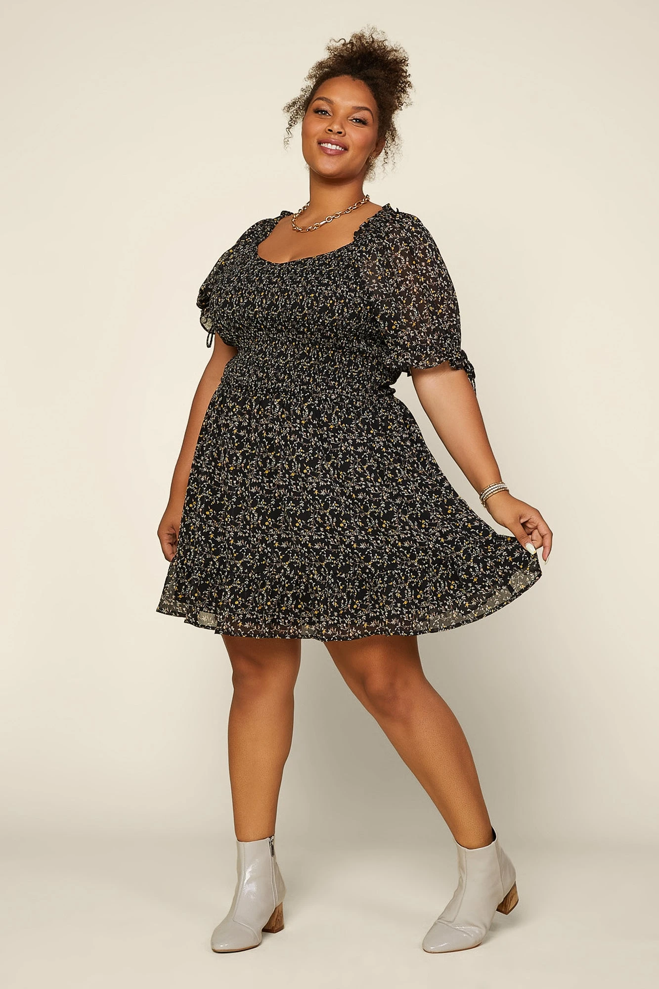 How sweet it is. Your new favorite dress is here, done in the daintiest floral print and smocked for the perfect fit. Ruffle trim and gently puffed short sleeves complete the look.