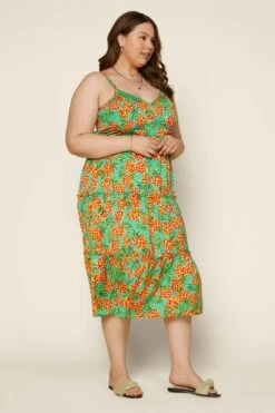 This tiered maxi dress is such a charmer in a whimsical pineapple print. It’s bright and playful, done in punchy colors and featuring adjustable straps and flexible smocking for the perfect fit.Â