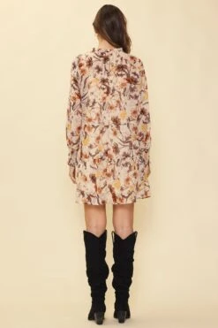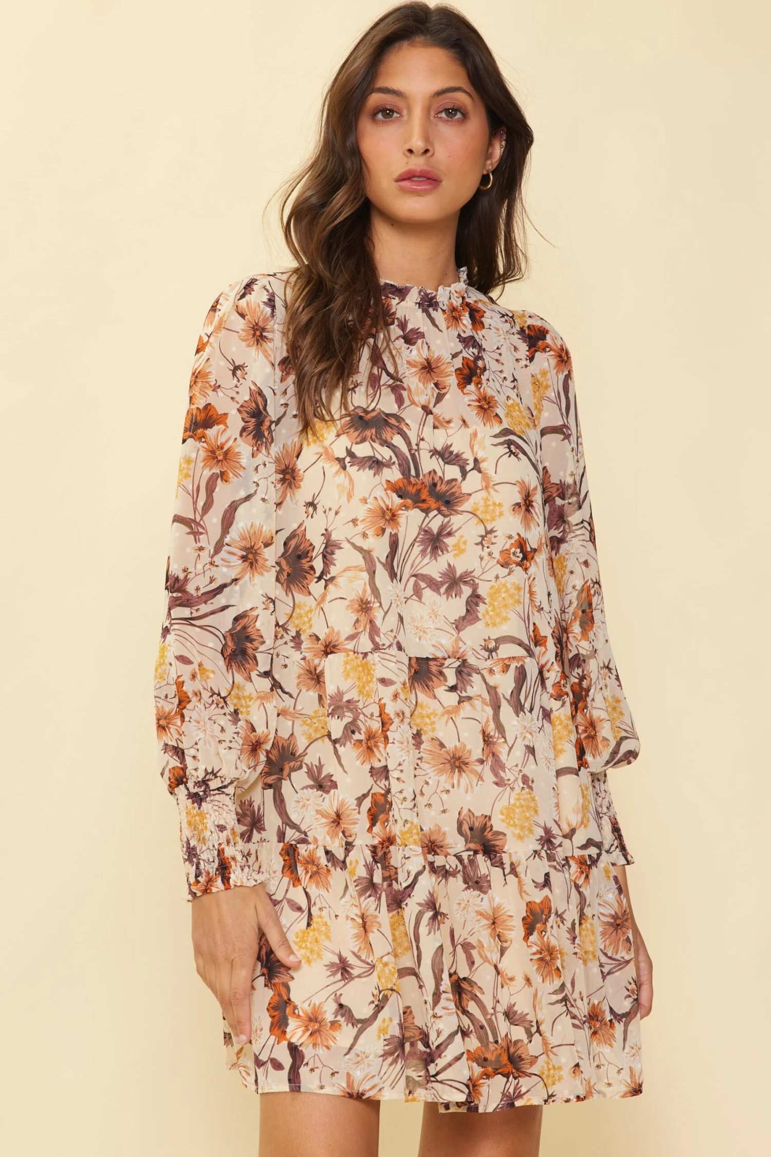 This floaty dress is cut from sheer jacquard with a polka-dot motif woven into it. Patterned with a vintage-inspired floral print, it has long sleeves, smocked cuffs, and a tiered skirt. The ruffled neckline and back keyhole heighten the feminine feel.