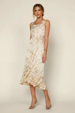 Floral, with a twist. This square-neck dress has wide straps and a fitted bodice accented by a twist detail at the waist. It flows to a ruffled tulip hem, landing at the perfect shin-skimming length. Just what you need for all those occasions ahead.