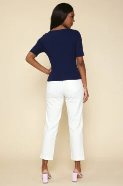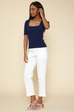 Meet your new knit top obsession! This top is soft, snuggly, and oh-so stylish. Its knit fabric keeps you cozy and warm while its square neckline adds a hint of edge to your look. Wear it in place of your everyday tee, or dress it up for going out.Â