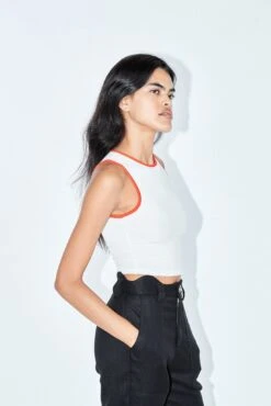 Penelope’s favorite everyday top. The ribbed material is stretchy and durable making it the ultimate cropped tank. Perfect for traveling or doing yoga or saying hello to your neighbor Isabella.