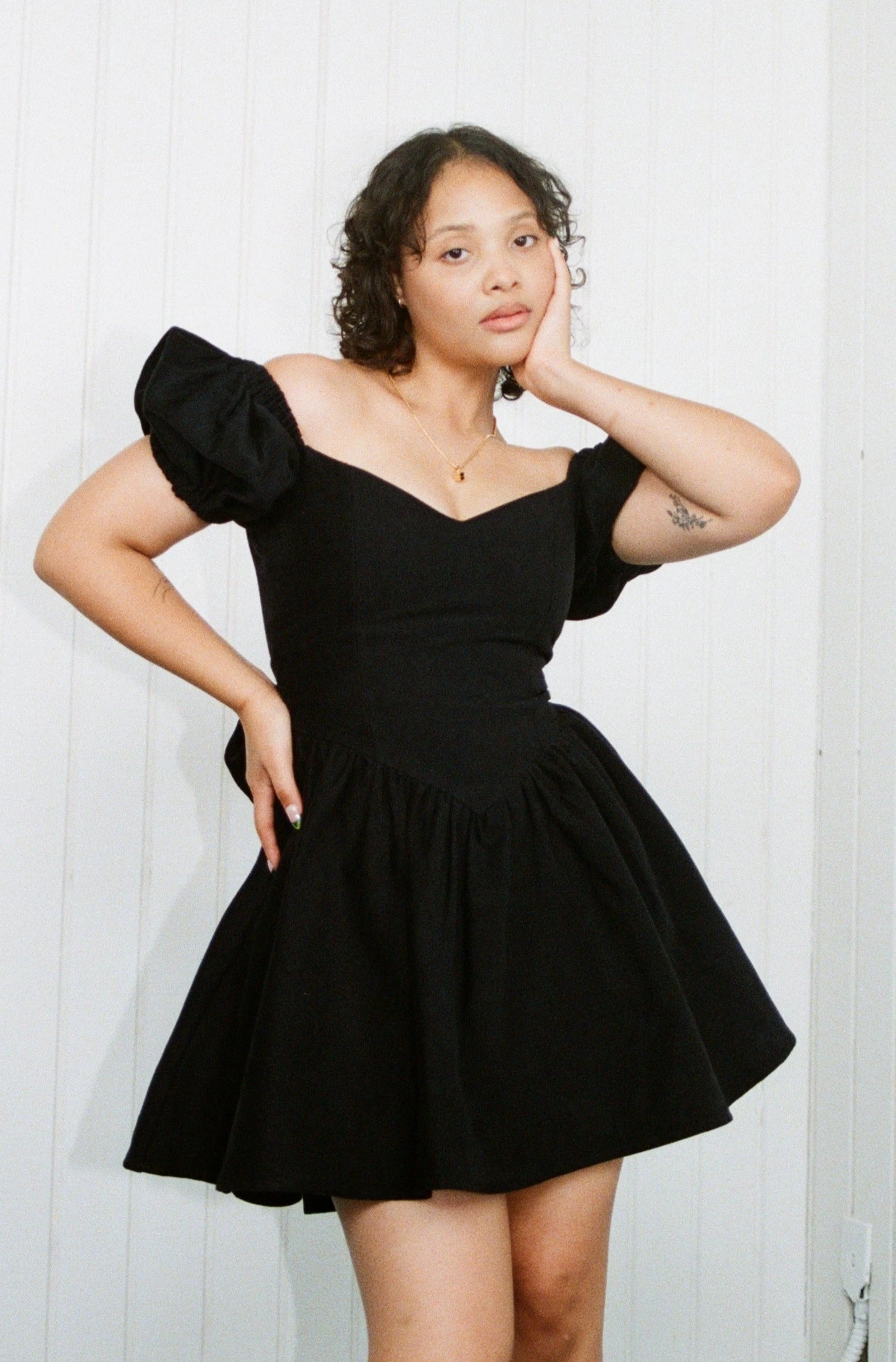 Made from thick 100% cotton that feels like a mix between denim and canvas. You’ve got this beautifully structured skirt and bodice, both lined with soft white thin cotton, and perfectly crafted sleeves that can be worn on or off the shoulder. Perfect for stealing the spotlight at someone else’s wedding.Â